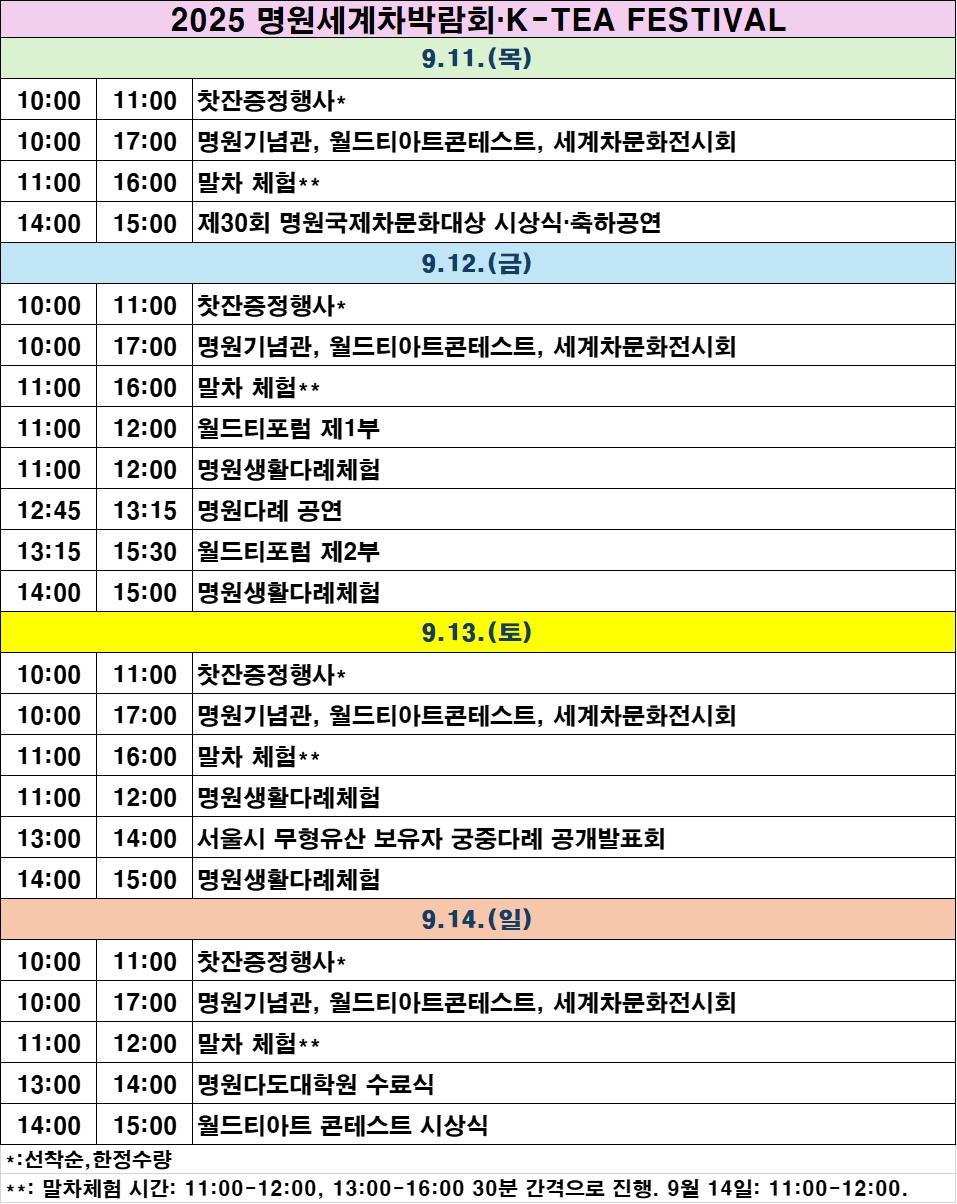 2025. 9. 11.(목) ~ 2025. 9. 14.(일)